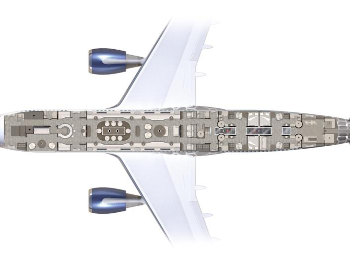 Πιο αναλυτικά, το Airbus A330 διαθέτει ένα μεγάλο σαλόνι στο κέντρο του αεροσκάφους με ένα μακρύ τραπέζι. Ο συγκεκριμένος χώρος μπορεί να λειτουργήσει από τραπεζαρία έως και αίθουσα συνεδριάσεων. Υπάρχει επίσης, μία καμπίνα με τρία κρεβάτια – καθένα από αυτά χωρίζεται από μια συρόμενη πόρτα.