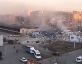 В результате взрыва здание торгового центра на ул. Гагкаева рухнуло, конструкция сложилась. #осетия #владикавказ pic.twitter.com/HaZ7XTZklJ