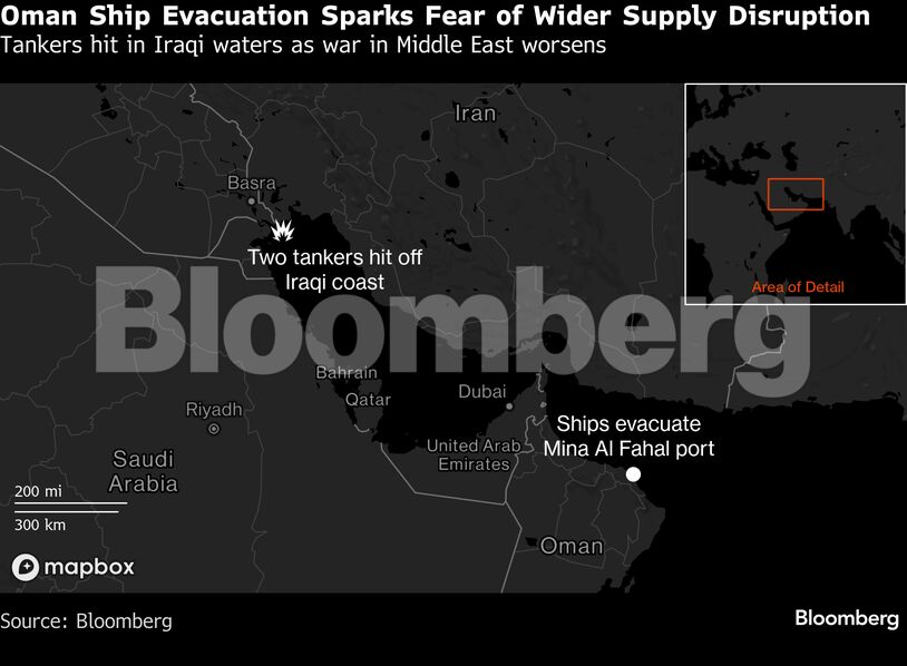 Οι επιθέσεις στα πλοία οδήγησαν στην αναστολή λειτουργίας των ιρακινών τερματικών πετρελαίου. Παράλληλα, τα πλοία διατάχθηκαν να αποχωρήσουν από το λιμάνι Mina Al Fahal στο Ομάν ως προληπτικό μέτρο, σύμφωνα με πηγές του Bloomberg.