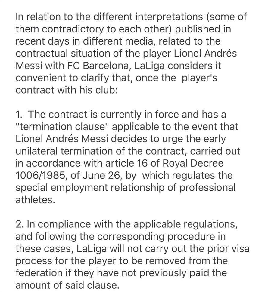 Όπως ανέφερε η La Liga, είναι ακόμα ενεργή η ρήτρα των 700 εκατομμυρίων ευρώ, όπως ακριβώς το έχει τονίσει η διοίκηση των «μπλαουγκράνα» στον ποδοσφαιριστή.