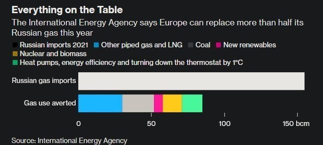 Περίπου το 40% του ευρωπαϊκού φυσικού αερίου προέρχεται από τη Ρωσία. Προφανώς, αυτή η εξάρτηση θα αποτελέσει και τη μεγαλύτερη δυσκολία απαγκίστρωσης της Ένωσης από τη ρωσική οικονομία. Αν και οι εισαγωγές φυσικού αερίου έχουν μειωθεί από τα υψηλά Φεβρουαρίου και Μαρτίου λόγω της αύξησης της θερμοκρασίας και των εισαγωγών LNG από τρίτες χώρες, υπάρχουν και προβλήματα. Η Ρωσία έχει «κλείσει τις κάνουλες» στην Πολωνία, τη Βουλγαρία, τη Φινλανδία, την Ολλανδία και τη Δανία.