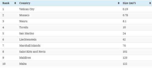 Η μικρή έκταση δεν συνεπάγεται αναγκαστικά και μικρή δύναμη. Στις περισσότερες περιπτώσεις μάλιστα συμβαίνει το αντίθετο. Αδιαμφισβήτητα, το πιο χαρακτηριστικό παράδειγμά αποτελεί το Βατικανό. Το μικρότερο κρατίδιο παγκοσμίως με έκταση μόλις 0,44 τ.χιλ.