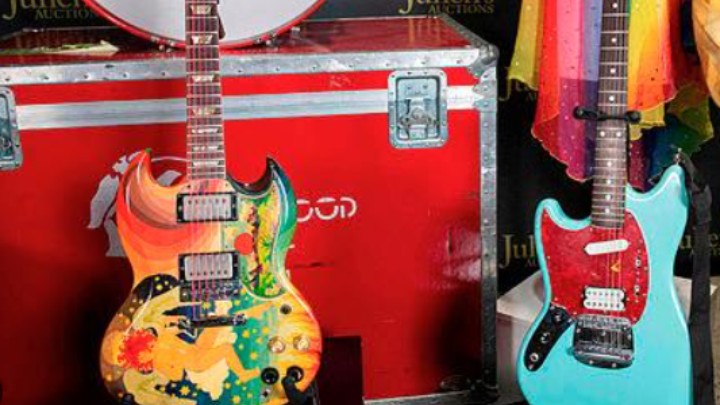 Η κιθάρα που δημοπρατήθηκε στο Νάσβιλ του Τενεσί ήταν άθικτη, εν αντιθέσει με πολλές κιθάρες που έσπασε επί σκηνής ο θρύλος της εναλλακτικής ροκ μουσικής. Τον Μάιο, μια Fender Stratocaster που είχε σπάσει ο διάσημος μουσικός πουλήθηκε για 595.000 δολάρια σε δημοπρασία που έγινε στο Hard Rock Cafe της Νέας Υόρκης.