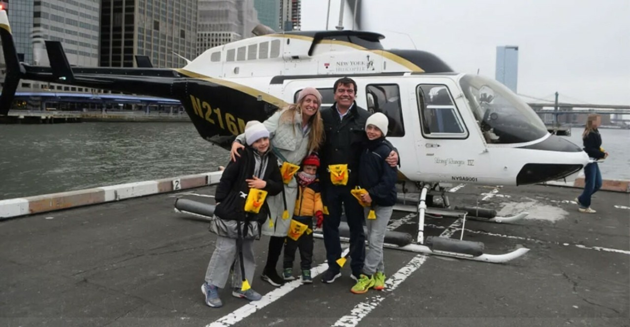 Σε μια δεύτερη φωτογραφία όλη η οικογένεια ποζάρει χαμογελαστή μέσα στο Bell 206L-4 LongRanger IV, όπως ήταν ο τύπος του ελικοπτέρου.