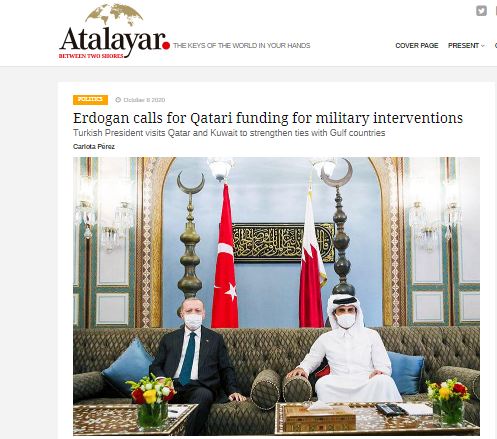 Σε αυτό το πλαίσιο, σημειώνει η Atalayar, ο Ερντογάν έχει την αδήριτη ανάγκη να ζητήσει χρηματοδότηση από την πλούσια χώρα του Κόλπου, αλλά, λόγω της επιθυμίας της Ντόχα να μην φαίνεται ανοιχτά ως χρηματοδότης πολεμικών συγκρούσεων, η χρηματοδότηση θα πραγματοποιηθεί μέσω συμφωνιών και επενδύσεων μεταξύ των δύο χωρών ως κάλυψη για τα κεφάλαια που χρειάζεται ο Ερντογάν.