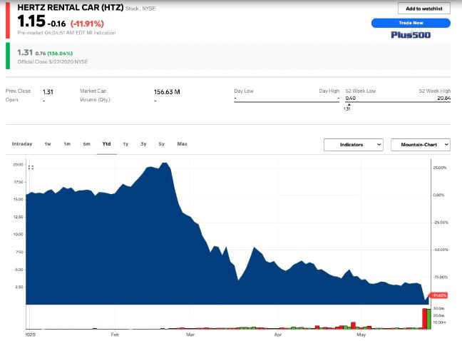 Ο ακτιβιστής επενδυτής Carl Icahn, βασικός μέτοχος της Hertz, μόλις έγινε κατά $2 δισ. φτωχότερος, καθώς πούλησε σε εξευτελιστική τιμή το σύνολο των μετοχών που κατείχε στην εταιρεία που υπέβαλε αίτηση για υπαγωγή στον πτωχευτικό κώδικα.