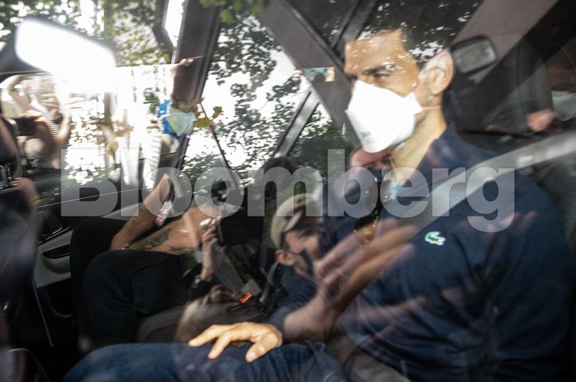 Ο υπ’ αριθμόν ένα τενίστας στην παγκόσμια κατάταξη βγήκε από το αεροσκάφος με δυο σάκους, φορώντας χειρουργική μάσκα, έπειτα από την προσγείωση του αεροσκάφους στο διεθνές αεροδρόμιο του Ντουμπάι στις 05:32 (τοπική ώρα· στις 03:32 ώρα Ελλάδας).