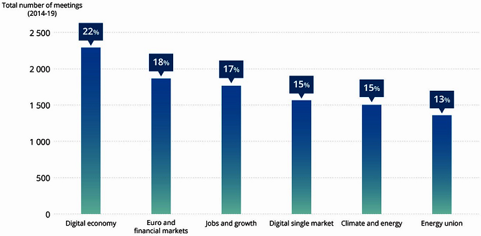 Τα πιο στοχευμένα χαρτοφυλάκια στις συναντήσεις του Ευρωπαϊκού Κοινοβουλίου με τους λομπίστες (2014-19)