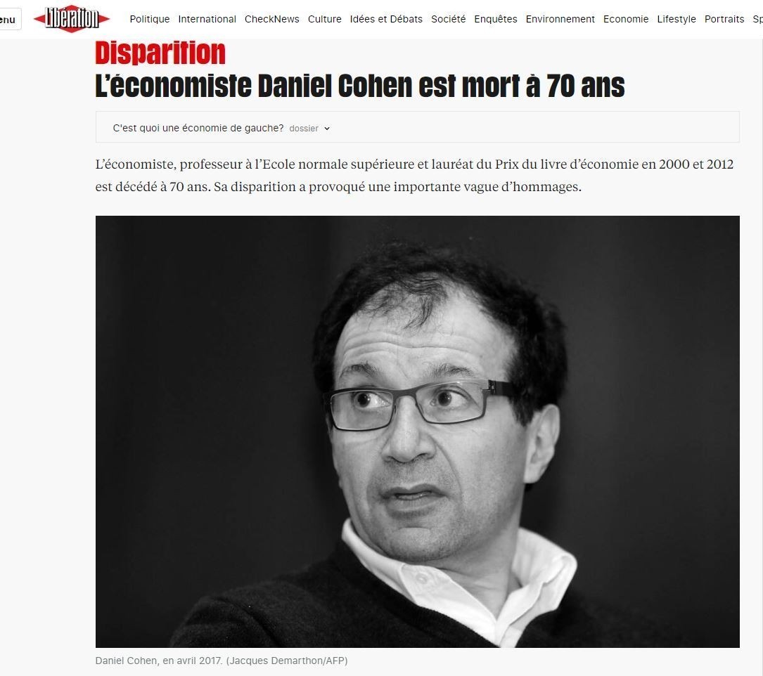 So sorry to learn of the passing of Daniel Cohen, the French economist.