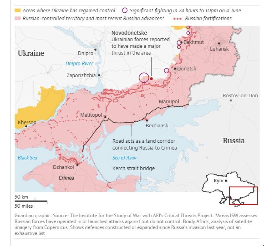 Πάντως μέχρι αυτή την ώρα δεν είναι ξεκάθαρο εάν ξεκίνησε η μεγάλης κλίμακς αντεπίθεση των Ουκρανών. Και αυτό διότι δεν είναι σαφές εάν πρόκειται για επιχείρηση που θα οδηγήσει στην ανακατάληψη των εδαφών που έχουν καταλάβει οι Ρώσοι ή εάν πρόκειται για κινήσεις αντιπερισπασμού από την πλευρά του Κιέβου.