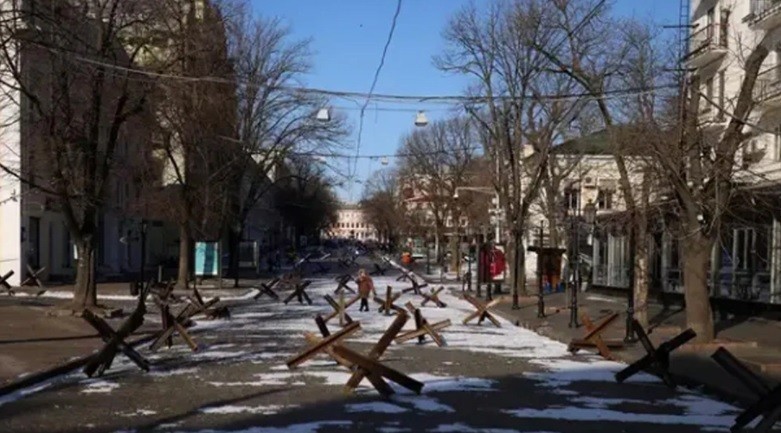Στους δρόμους της Οδησσού έχουν τοποθετηθεί ειδικές μεταλλικές κατασκευές ώστε να αποτραπεί η ρωσική πολιορκία.
