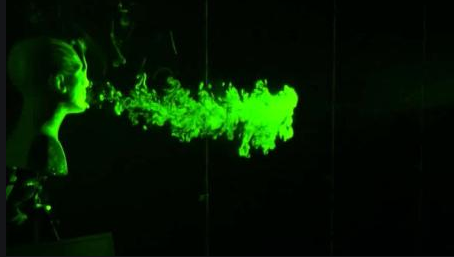 Οι επιστήμονες χρησιμοποιούν ένα ομοίωμα ανθρώπου, μία τρόμπα για να προσομοιάσουν το βήξιμο καθώς και ένα πράσινο λέιζερ για να εντοπίσουν τα μικροσταγονίδια. Το πρώτο πείραμα δείχνει ότι εάν χρησιμοποιήσουμε προστατευτικό μέσο, τα σταγονίδια θα καλύψουν σε σχεδόν 5 δευτερόλεπτα την ασφαλή απόσταση των 2 μέτρων, για να ξεπεράσουν σε σύντομο χρόνο ακόμα και τα 3,5 μέτρα όπου και παραμένουν.