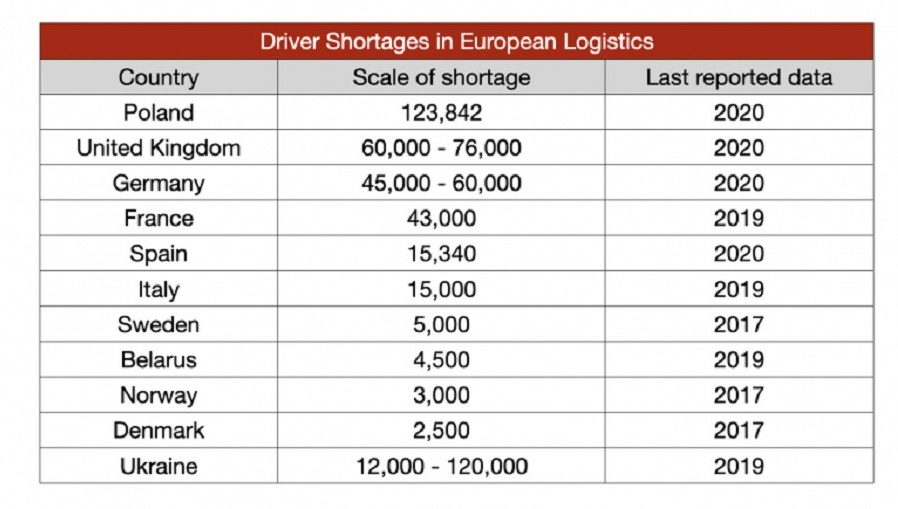 Μόνο στη Βρετανία σύμφωνα με τα επίσημα στοιχεία έρευνας του Transport Intelligence εκτιμάται ότι λείπουν 76.000 οδηγοί φορτηγών!