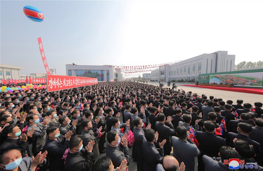 Οι Βορειοκορεάτες, προκειμένου να αποδείξουν ότι επανεμφανίστηκε δημοσίως ο Κιμ Γιονγκ Ουν και ότι είναι καλά στην υγεία του, έδωσαν στη δημοσιότητα φωτογραφίες από την κοπή κορδέλας στα εγκαίνια του εργοστασίου.