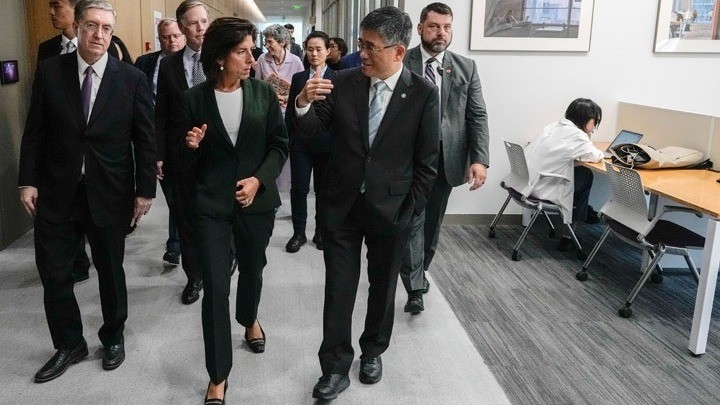 Η κυρία Ραϊμόντο επισκέπτεται την Κίνα από την Κυριακή, στο πλαίσιο της προσπάθειας της κυβέρνησης του προέδρου Τζο Μπάιντεν να αποκλιμακωθούν οι εντάσεις στη σχέση των δυο μεγαλύτερων οικονομιών του κόσμου.