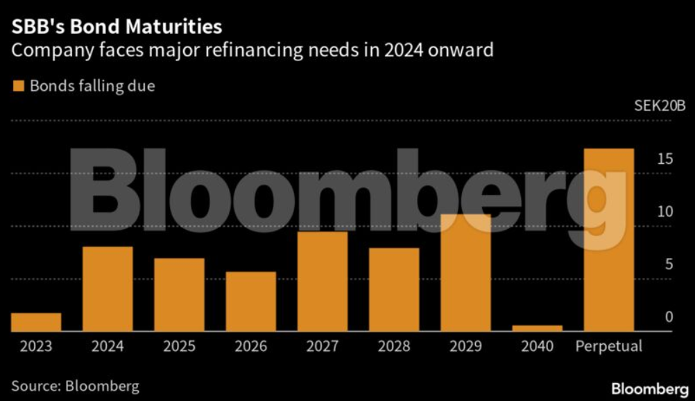 Όπως και πολλοί άλλοι ιδιοκτήτες ακινήτων σε όλη την Ευρώπη, η SBB δανείστηκε σε μεγάλο βαθμό από επενδυτές που επιθυμούσαν απόδοση σε μια εποχή εξαιρετικά χαμηλών επιτοκίων. Αυτό που κάνει την εταιρεία να ξεχωρίζει είναι η κλίμακα του δανεισμού και η έκθεσή της στη Σουηδία – έδρα μιας από τις χειρότερες διαδρομές ακινήτων στον κόσμο. Αυτό σημαίνει ότι αντιμετωπίζει πιέσεις αναδιάρθρωσης νωρίτερα από ό,τι οι ομοειδείς της, καθιστώντας την SBB πιθανό προάγγελο των πραγμάτων που έρχονται.