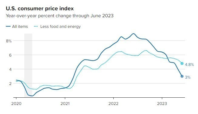 Μεγάλη «ανάσα» πήραν οι τιμές αγαθών και υπηρεσιών στις ΗΠΑ, καθώς ο πληθωρισμός επιβράδυνε στο χαμηλότερο επίπεδο των τελευταίων τουλάχιστον δύο ετών (από τον Μάρτιο του 2021), συνεχίζοντας την πορεία αποκλιμάκωσης (είχε κορυφωθεί στο 9%).
