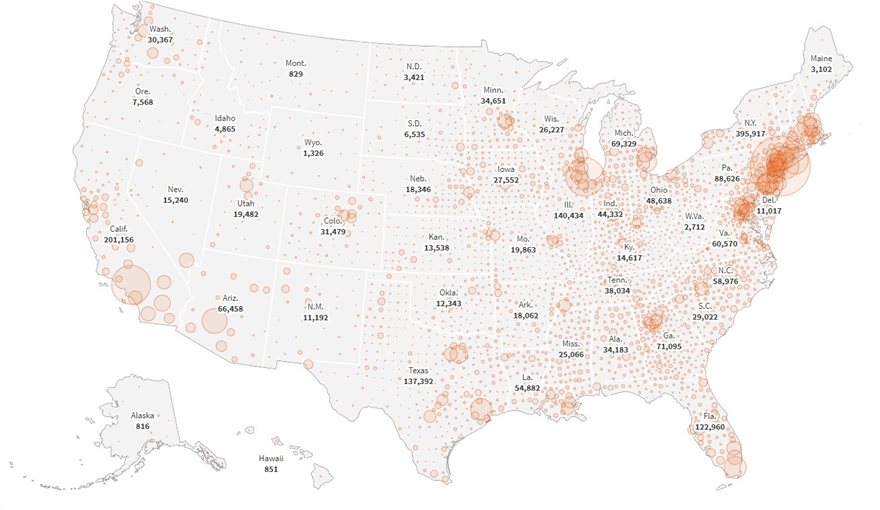 Είκοσι πέντε πολιτείες των ΗΠΑ ανέφεραν περισσότερα νέα κρούσματα την περασμένη εβδομάδα, συμπεριλαμβανομένων δέκα πολιτειών που είδαν εβδομαδιαίες νέες λοιμώξεις να αυξάνονται περισσότερο από 50%.