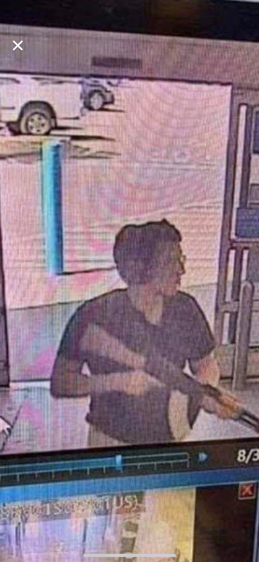 Σε στιγμιότυπο από κάμερα κλειστού κυκλώματος παρακολούθησης που μεταφόρτωσε στο Διαδίκτυο ο τηλεοπτικός σταθμός KTSM, ο νεαρός εικονίζεται να κινείται προς το πολυκατάστημα με ένα τουφέκι στα χέρια και τα αυτιά του καλυμμένα με ωτοασπίδες σκοπευτηρίου.