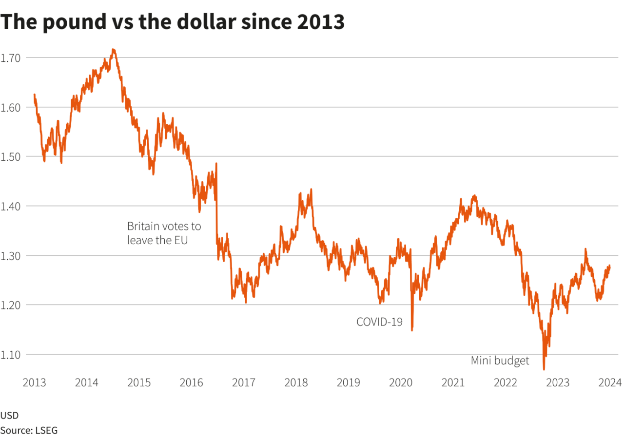 Μία άλλη πιθανή πηγή αστάθειας είναι και οι επερχόμενες βρετανικές εκλογές, οι οποίες πρέπει να διεξαχθούν ως τον Ιανουάριο του 2025 αλλά αναμένονται φέτος, με τις δημοσκοπήσεις να ευνοούν το αντιπολιτευόμενο κόμμα των Εργατικών.