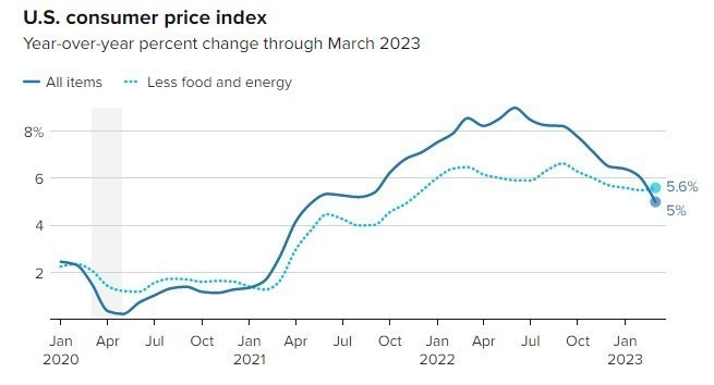 Πιο συγκεκριμένα, όπως έγινε γνωστό το μεσημέρι της Τετάρτης, ο δείκτης τιμών καταναλωτή διαμορφώθηκε στο 5% σε ετήσιο επίπεδο (6% η επίδοση του Φεβρουαρίου), σε χαμηλό 2ετίας, και στο 0,1% σε μηνιαίο επίπεδο (0,4% η επίδοση του Φεβρουαρίου). Οι αναλυτές περίμεναν επιδόσεις 5,1% και 0,2%, αντίστοιχα.