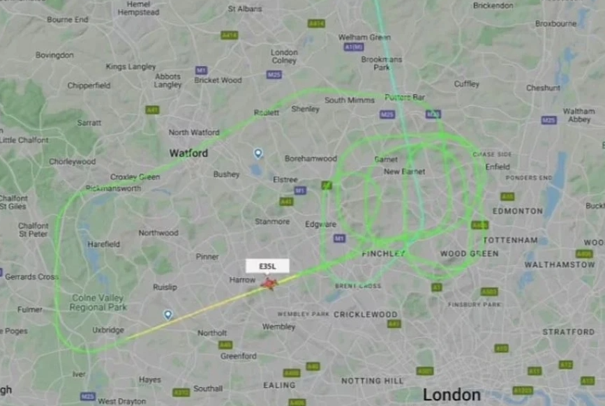 Το 13θέσιο τζετ επιχείρησε να προσγειωθεί στο RAF Northolt, στο βορειοδυτικό Λονδίνο, όμως τη προσγείωση ακυρώθηκε. Το αεροπλάνο απογειώθηκε από το Αμπερντίν μετά τη 13:00 κατά τη διάρκεια μιας νεροποντής και έφτασε στο Λονδίνο εν μέσω καταιγίδας, βροχής και χαλαζόπτωσης. Μόλις άνοιξε ο καιρός, ο πιλότος αποφάσισε την προσγείωση του αεροπλάνου.