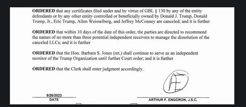 H απόφαση του Ανώτατου Δικαστή Άρθουρ Ένγκορον συμπεριλαμβάνει τη λίστα με τις απάτες σε ανακοίνωση 35 σελίδων στις οποίες καταρρίπτει όποιους ισχυρισμούς των δικηγόρων του Τραμπ. Σε μόλις δύο παραγράφους, η εταιρεία Trump Organization καταλύεται.