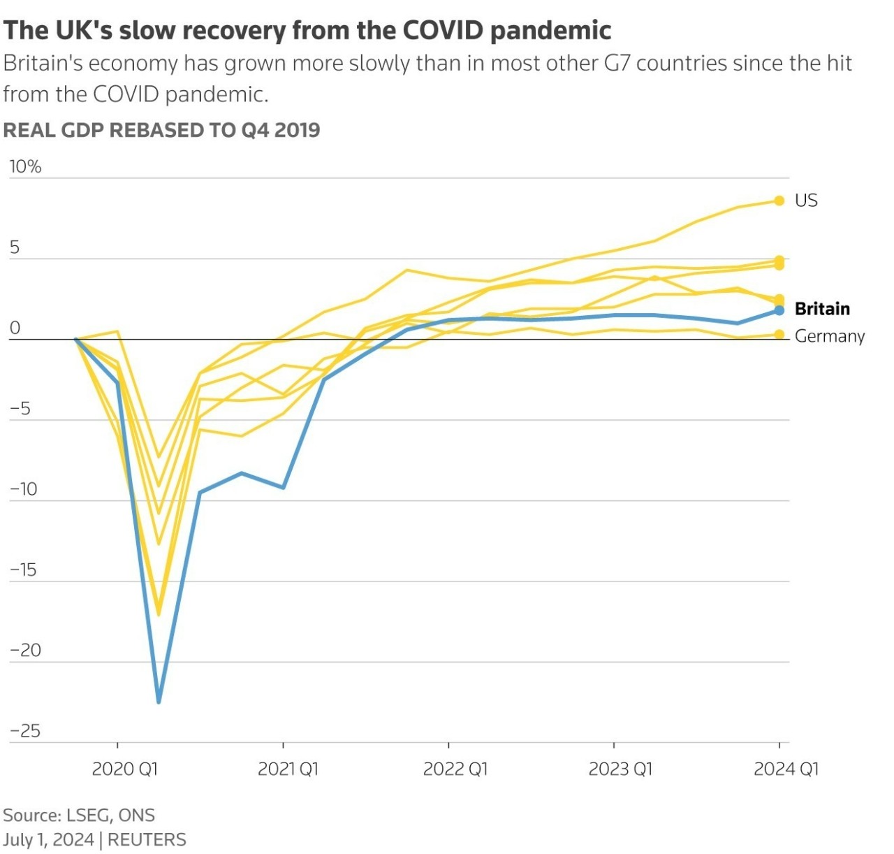 Η νέα κυβέρνηση των Εργατικών, η οποία έχει δεσμευτεί να αναπτύξει την οικονομία, διατηρώντας παράλληλα τις δαπάνες περιορισμένες, αντιμετωπίζει προκλήσεις, με το δημόσιο χρέος να προσεγγίζει το 100% του ΑΕΠ.