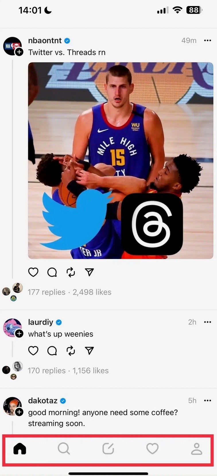 H περιήγηση είναι απλή. Το κουμπί με το σπιτάκι σας πάει στο feed σας. Ο μεγεθυντικός φακός είναι η μηχανή αναζήτησης, ενώ η εικόνα με το μολυβόχαρτο σας επιτρέπει να ξεκινήσετε καινούργιο νήμα (thread).