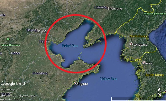 Επιπλέον το Πέλαγος Μποχάι είναι δίπλα στην μητροπολιτική περιοχή του Πεκίνου και της Τιαντζίν. (στα αριστερά του κόκκινου κύκλου). Το Πέλαγος Μποχάι έχει δηλωθεί από την Κίνα ως περίκλιστη θάλασσα εντός της επικράτειάς της. Ωστόσο το Πεκίνο δεν έχει δώσει επίσημα συντεταγμένες για να το κατοχυρώσει ως τέτοιο.