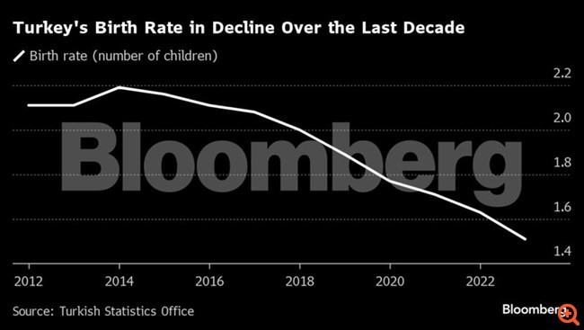 Η μείωση του πληθυσμού της Τουρκίας στις ηλικίες απασχόλησης και η πτώση των γεννήσεων δεν είναι τόσο ακραία όσο σε πολλές ανεπτυγμένες χώρες, αλλά εξακολουθεί να λειτουργεί ενάντια στη φιλοδοξία του Ερντογάν να αναπτύξει την οικονομία με τη βοήθεια ενός νέου εργατικού δυναμικού. Ένα υψηλότερο ποσοστό γεννήσεων στην Τουρκία θα αύξανε τον πληθυσμό, διευρύνοντας τη συμβολή της εργασίας στο δυνητικό ΑΕΠ για τις επόμενες δεκαετίες, σύμφωνα με το Bloomberg Economics.