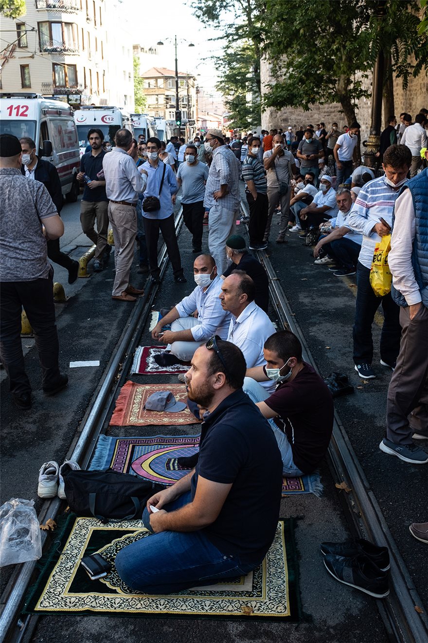 Από νωρίς το πρωί Μουσουλμάνοι συγκεντρώθηκαν έξω απο την Αγιά Σοφιά