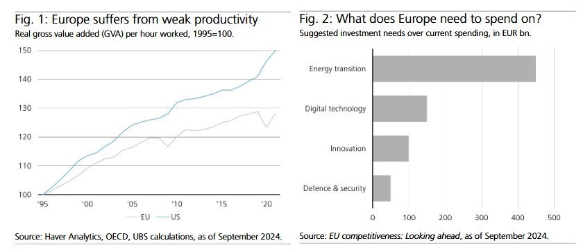Όπως τονίζουν οι αναλυτές της ελβετικής τράπεζας, για να κατανοήσουμε πλήρως την έκθεση Ντράγκι και τις προτάσεις της, είναι χρήσιμο να σταθούμε στο πλαίσιο μέσα από το οποίο η έκθεση αντιλαμβάνεται την οικονομική δυσπραγία της Ευρώπης τις τελευταίες δύο δεκαετίες.