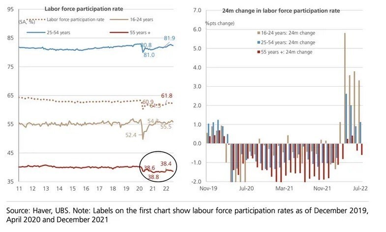 Η μειωμένη συμμετοχή στην αγορά εργασίας αποτελεί πρόβλημα για τις μετοχές αφού οδηγεί σε μισθολογική αύξηση. Η έλλειψη εργατικού δυναμικού οδηγεί σε ανταγωνισμό μεταξύ εταιρειών για προσέλκυση εργαζομένων, μειώνοντας τα περιθώρια κέρδους.