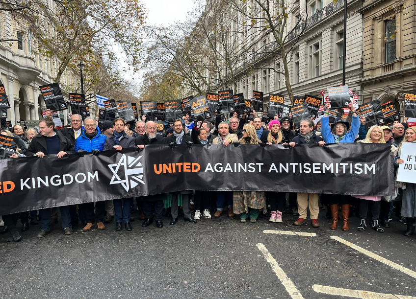 Χιλιάδες διαδηλωτές συμμετείχαν σήμερα στην πορεία κατά του αντισημιτισμού, στους δρόμους του Λονδίνου, μία ημέρα μετά τη νέα κινητοποίηση υπέρ των Παλαιστινίων στη βρετανική πρωτεύουσα.