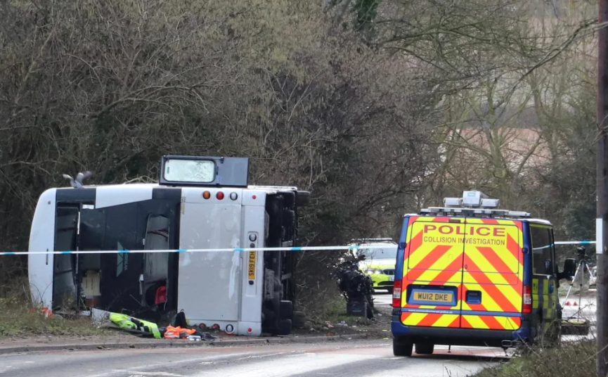 Σύμφωνα με βρετανικά μέσα ενημέρωσης το λεωφορείο μετέφερε περίπου 70 εργαζομένους σε πυρηνικό εργοστάσιο.