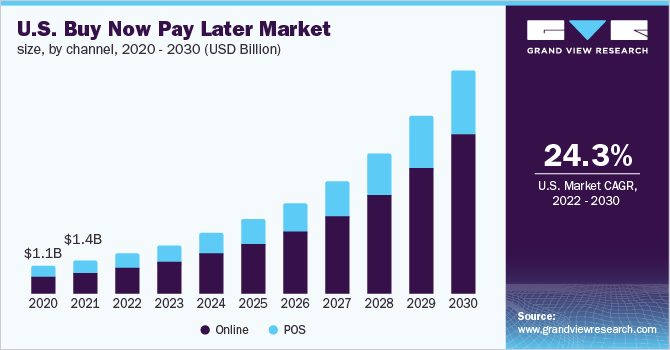 Σύμφωνα με το Bloomberg, η χρήση του BNPL αυξάνεται κατά 300% ετησίως τα τελευταία τέσσερα χρόνια στις Ηνωμένες Πολιτείες.