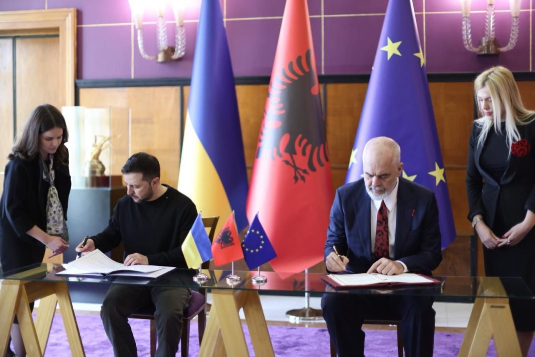 “Είναι μια καίριας σημασίας στιγμή για να προωθηθούν οι διμερείς δεσμοί και να σταθούμε σε αλληλεγγύη με την Ουκρανία στην ηρωική μάχη της κατά της επιθετικότητας της Ρωσίας”, έγραψε στο X ο Αλβανός πρωθυπουργός Ίγκλι Χασάνι, λίγο μετά την άφιξη του Ζελένσκι.
