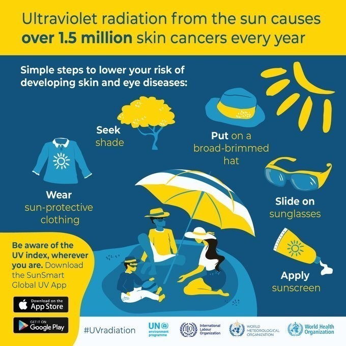 Η Διεθνής Οργάνωση Εργασίας έχει εκδώσει οδηγό με συμβουλές για το πώς μπορούν οι εργαζόμενοι να λάβουν κάποια βασικά μέτρα προστασίας για να αποφύγουν βλάβη στο δέρμα και τα μάτια τους από τις ακτινοβολίες UV.