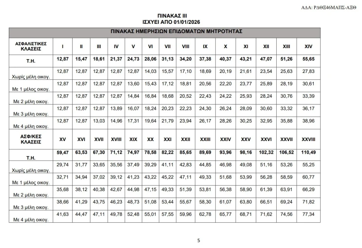 Η αναπροσαρμογή αυτή προκύπτει από την αύξηση των ημερήσιων μισθών και των τεκμαρτών ημερομισθίων ασφάλισης, εξέλιξη που συνδέεται άμεσα με την άνοδο των συντάξεων κατά 2,40% από την 1η Ιανουαρίου 2026.