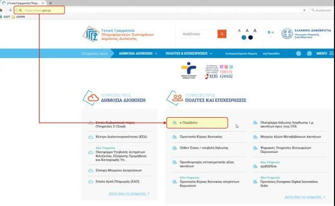Πληκτρολογήστε την ιστοσελίδα της ΓΓΠΣ www.gsis.gr και μετά κλικ στην επιλογή e-paravolo.