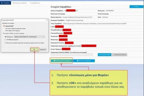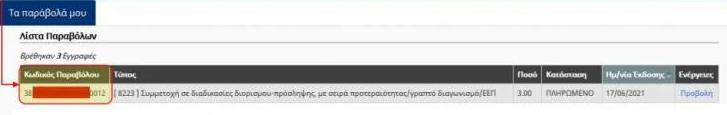 Αντιγραφή 20 ψηφίων από τη Λίστα Παραβόλων TAXISnet