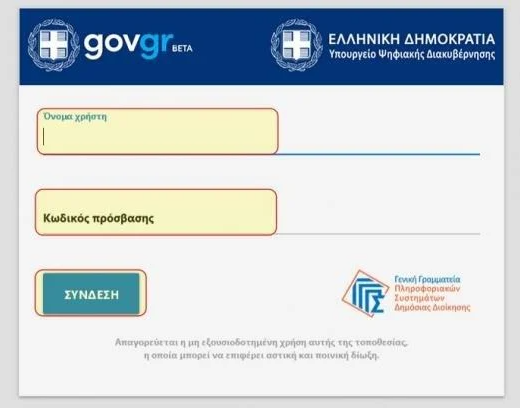 Καταχωρίστε τους προσωπικούς κωδικούς TAXISnet και πατήστε «ΣΥΝΔΕΣΗ»