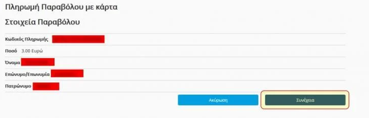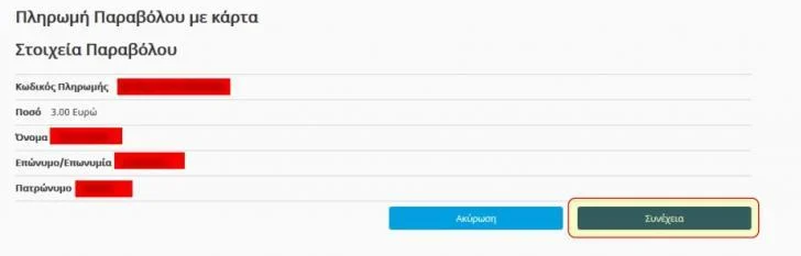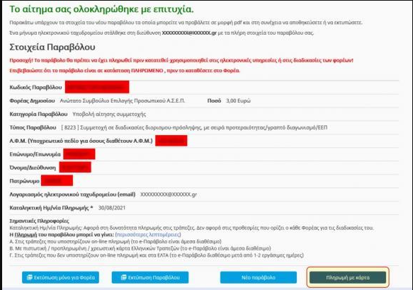 Πατήστε «Πληρωμή με κάρτα» προκειμένου να πληρώσετε άμεσα το παράβολο