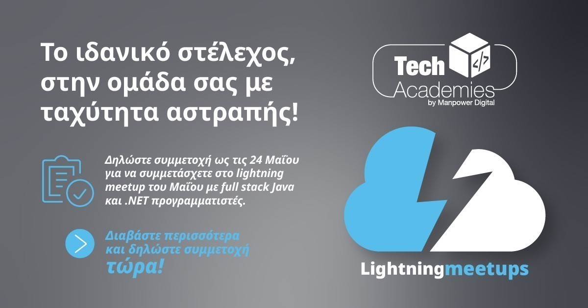 Έναν κύκλο online συναντήσεων ονόματι lightning meetups εγκαινιάζει η ManpowerGroup Ελλάδας προκειμένου οι Οργανισμοί που έχουν εκδηλώσει ενδιαφέρον για τους εκπαιδευόμενους των Tech Academies να έρθουν σε επαφή μαζί τους και να αντλήσουν περισσότερες πληροφορίες για τα προγράμματα μετεκπαιδεύσεων που έχουν σχεδιαστεί για να παρέχουν τις γνώσεις και δεξιότητες που απαιτεί η αγορά εργασίας σε απόφοιτους STEM.
