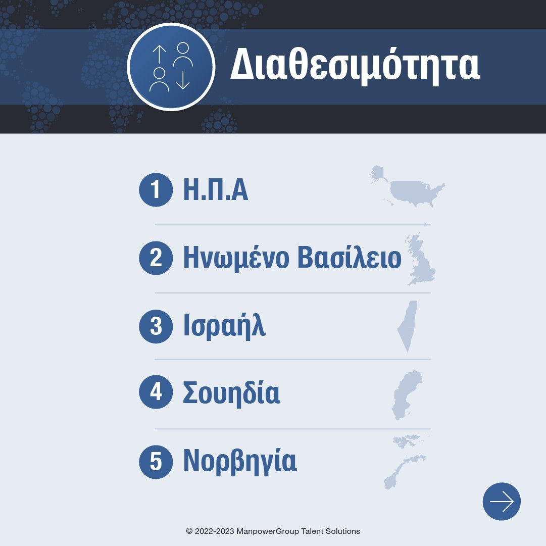 Δείτε ολόκληρη την έκθεση TWI 2022 την πλήρη κατάταξη στις αγορές που είναι πιο ευνοϊκές για τη διεξαγωγή επιχειρήσεων: https://talentsolutions.manpowergroup.com/twi