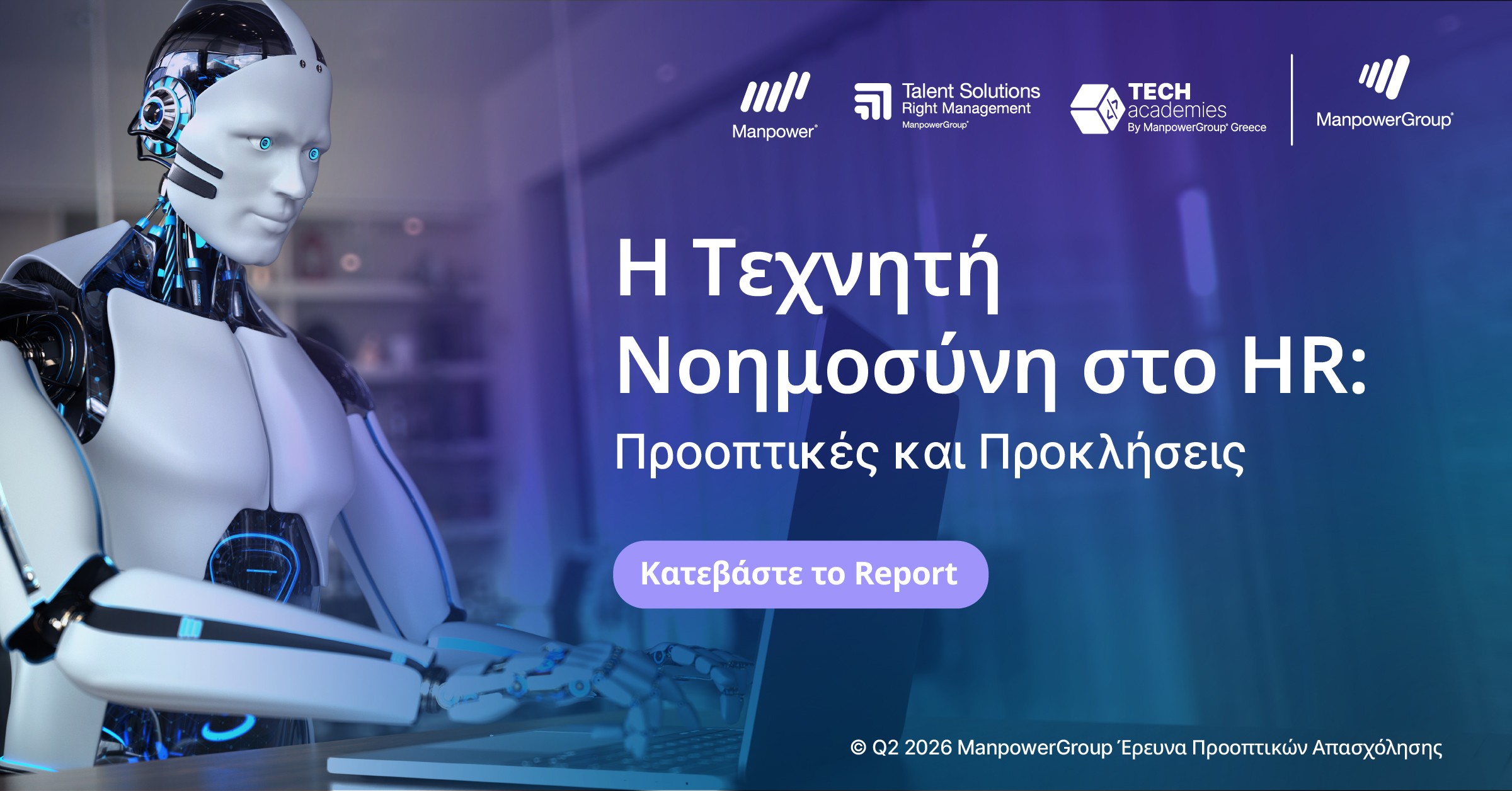 Σε αυτό το πλαίσιο, τα ευρήματα της νέας έρευνας της ManpowerGroup για την Τεχνητή Νοημοσύνη στο HR που προκύπτουν από επιπρόσθετες ερωτήσεις που τέθηκαν στο πλαίσιο της Έρευνας Προοπτικών Απασχόλησης για το 2ο τρίμηνο του 2026, σε δείγμα 529 Ελλήνων εργοδοτών, σκιαγραφούν μια ξεκάθαρη εικόνα: η ΤΝ έχει τη δυνατότητα να μετασχηματίσει το HR και στην Ελλάδα. Ωστόσο, η αξιοποίηση της παραμένει περιορισμένη και διαφοροποιείται σημαντικά μεταξύ επιχειρήσεων, συνδεόμενη περισσότερο με την ετοιμότητα και τις δεξιότητες των ανθρώπων, παρά με τη διαθεσιμότητα της τεχνολογίας.