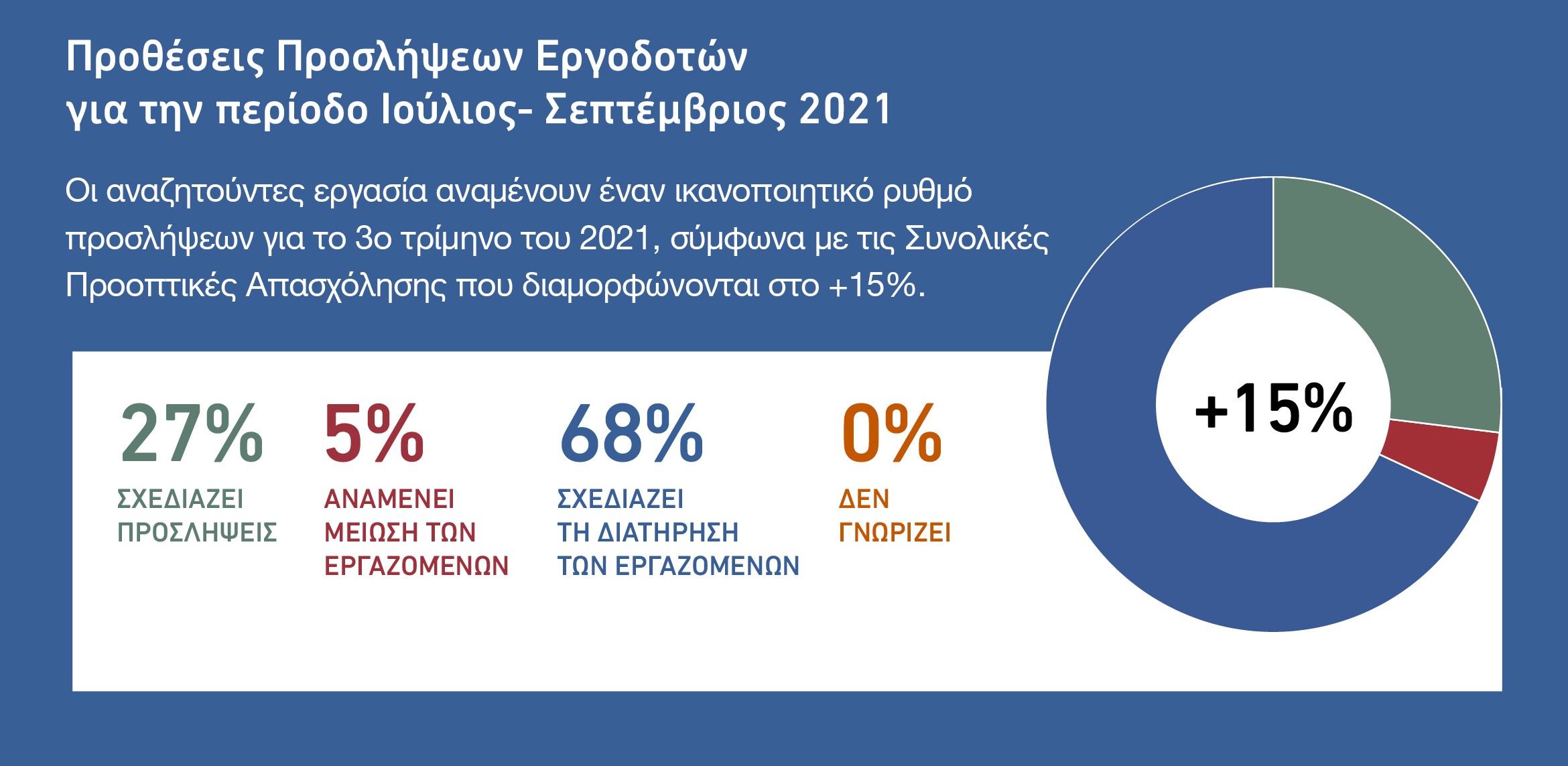 «Όπως παρατηρούμε οι προθέσεις προσλήψεων για το επόμενο τρίμηνο είναι αισιόδοξες για την αγορά εργασίας, γεγονός στο οποίο συνέβαλαν η σταθεροποίηση της πανδημικής κρίσης και η εντατικοποίηση του εμβολιαστικού προγράμματος.