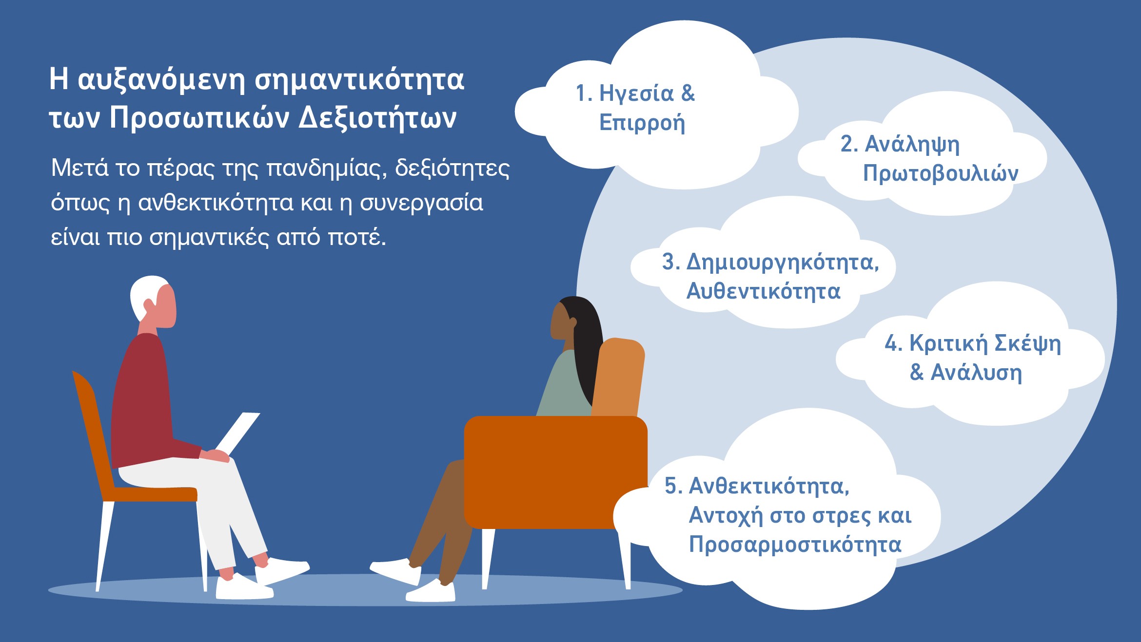 Οι 4 ρόλοι με την μεγαλύτερη δυσκολία κάλυψης σχετίζονται με: Πληροφορική/Δεδομένα (31%), Βιομηχανία/Παραγωγή (21%), Εφοδιαστική αλυσίδα/ Επιχειρησιακές Λειτουργίες (20%) και Πωλήσεις/Μάρκετινγκ (19%). Ενώ οι 4 προσωπικές δεξιότητες με την μεγαλύτερη δυσκολία εύρεσης είναι οι εξής: Ηγεσία & Κοινωνική Επιρροή (58%), Ανάληψη Πρωτοβουλιών (51%), Δημιουργικότητα & Αυθεντικότητα (49%) και Κριτική Σκέψη & Ανάλυση (48%).