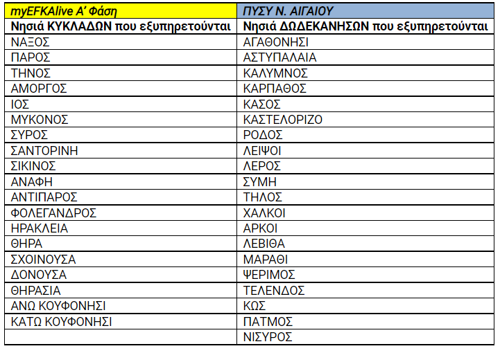 Ειδικότερα, στο myEFKAlive εντάσσονται οι περιοχές: